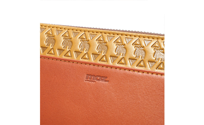 【mozのお財布紹介】ブランドアイコンであるエルク(ヘラジカ)をノルディック柄のように型押ししたかぶせ長財布