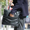 [ショート時] 約 (W)T48/B39×(H)26×(D)10(cm) 容量:約 7リットル [ロング時] 約 (W)T48/B39×(H)37×(D)10(cm) 容量:約 14リットル [内側] ・ファスナー付きポケット×1 ・クッション材ポケット×1 重量:約 980グラム 素材:本体/合成皮革(フェイクレザー)、ハンドル/本革(牛革) 製造国:フィリピン
