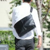 [ブリーフケース着用イメージ(ネイビー/モデル身長182cm)]