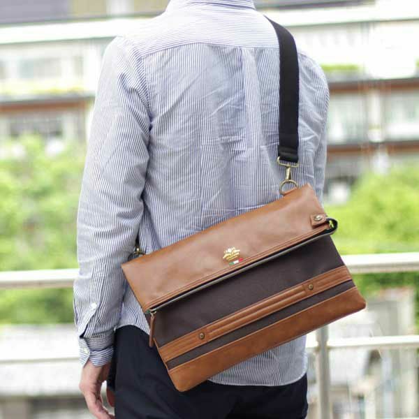イタリアの老舗自転車ブランドBianchi(ビアンキ)のバッグ。 高級感のあるフェイクレザー×ポリエステルツイル素材を組み合わせたTBTCシリーズ。 付属のショルダーストラップの付け外しで、 ショルダーバッグ⇔クラッチバッグの2WAY使用が可能です。 本体前面のベルトは、 クラッチバッグとして使用する際に手を通し、持ち手としてご使用いただけます。 本体内部には、Bianchiのイメージカラーである『チェレステカラー』の生地を採用。 内側にはオープンポケット×2、ファスナーポケット×1、ペン差し×3を完備。 外側前面・背面にもそれぞれファスナーポケットが完備されており、 荷物の整理・小分けがしやすい便利なデザインに。 フェイクレザーに箔押ししたGOLDロゴが、カジュアルになり過ぎず大人な雰囲気を醸し出します。