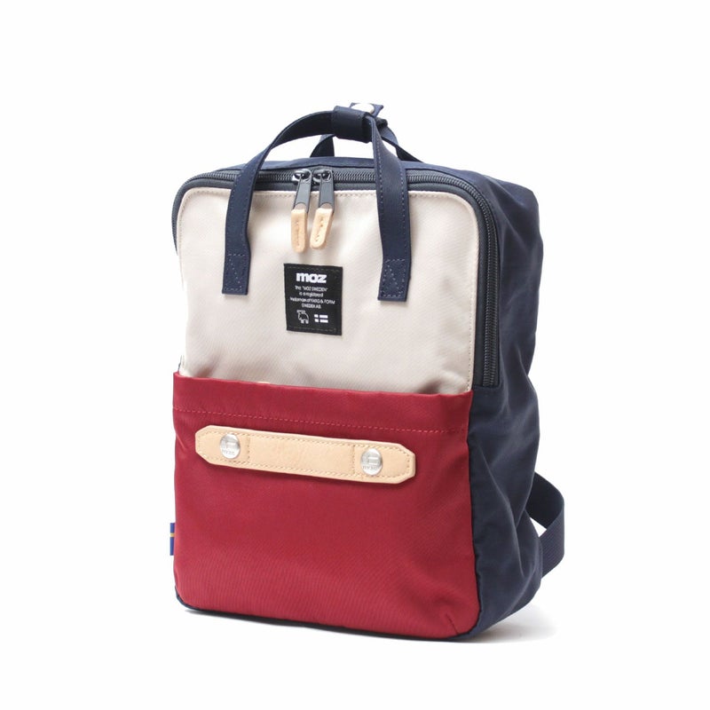 スウェーデン発の北欧ブランドmoz(モズ)。軽量で普段使いにぴったりの「EVERY - ZZCI」シリーズ、ZZCI-14Aは、手持ちも楽しめるハンドル付きのミニリュック。レディースもキッズも使えるサイズで親子コーデにもぴったりです。A5サイズ対応の便利な収納力で、500mlペットボトルも収納可能。リュックストラップはスナップボタンでまとめられるので、お子様が使用するときに余ったストラップを安全にまとめられます。ブルーのストライプ柄のかわいい裏地に加えて、ブランドモチーフのエルク(ヘラジカ)をあしらったネームタグも内蔵。お出かけ先での紛失防止にも役立ちます。