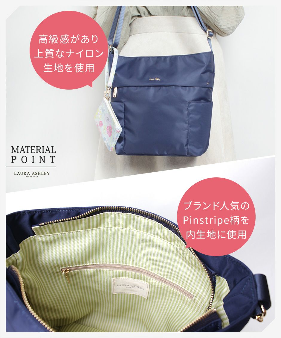 可愛いのに機能的、LAURA ASHLEY - ローラアシュレイと一緒お出かけができるショルダーバッグをご用意しています。
