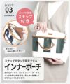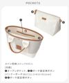 サイズ (W)(上)43/(下)33×(H)35×(D)9cm 容量 [本体]:(W)上39/下27×(H)20×(D)13cm [インナーポーチ]:(W)上27/下22.5×(H)15×(D)12cm (取り外し可能) 重量 約 370g 仕様 メイン収納(スナップボタン) [内側] ・オープンポケット×1 ・インナーポーチ固定用スナップ×2 [付属品] ・インナーポーチ×1個 ・仕切りあり(3仕切り) 素材 [本体]合成皮革・フェイクレザー、[付属パーツ]牛革、[ポーチ]ポリエステル、牛革 カラー ブラック、グレージュ、アイボリー×ネイビー、グリーン