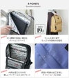 サイズ (W)(上)30/(下)28.5×(H)42×(D)16cm 容量 約 19リットル 重量 約 628g 仕様 メイン収納(ファスナー) [外側] ・ファスナーポケット×1 ・オープンサイドポケット×2 ・PC/書類収納スペース(クッション材)×1 [内側] ・ファスナーポケット×1 ・メッシュファスナーポケット×1 素材 [本体]リサイクルポリエステル、[付属]牛革 付属品 折りたたみエコバッグ×1 キーホルダー×1 カラー ブラック、ネイビー、グレー、ベージュ