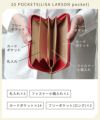 サイズ (W)19.5×(H)9.5×(D)2.5cm 重量 約 210g 仕様 [内側] ・札入れ×3 ・ファスナー小銭入れ×1 ・カードポケット×14 ・フリーポケット(ロング)×2 素材 牛革(日本製)、[裏地]コットンツイル(日本製)、YKKファスナー使用、チャームプレート(ハンドメイド製) カラーバリエーション レッド(赤×アイボリー)、ブラウン(茶色×ネイビー)、グレー(ライトグレー×アイボリー) 製造 ベトナム