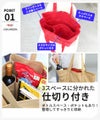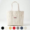 サイズ (W)(上)43/(下)33×(H)35×(D)9cm 容量 (上辺まで) 約20リットル (ボタンを留めた状態) 約14リットル 重量 約 550g 仕様 [外側] ・オープンポケット×5 [内側] ・オープンポケット×1 ・仕切りあり(3仕切り) 素材 [本体]高品質 綿ツイル、[付属]ヌメ革 カラー アイボリー(白、オフホワイト)、ブラック(黒)、レッド(赤)、ベージュ