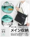 約(W)36×(H)25/34※縦に伸ばして使用した場合×(D)2.5~5.5cm (拡張最大サイズ) [外側] ・ファスナー付きポケット×1 ・背面ファスナーポケット×1 [内側] ・ファスナーポケット×1 ・オープンポケット×1 ・クッションポケット(小)×1 素材 : 本体/合成皮革 製造国 : ベトナム