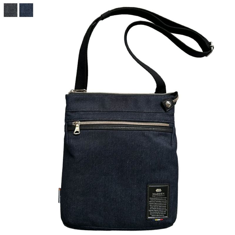 クラシカル で スタイリッシュ な デニム の ショルダーバッグ。濃いカラー の デニム生地 なので コーデしやすく、スニーカー に 合わせたい ビジネスカジュアル にも対応します。