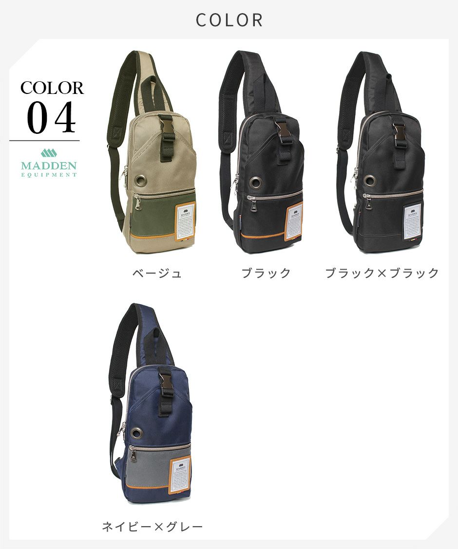 ボディバッグは体に密着するタイプのバッグとなっているので、休日や散歩、自転車に乗る時などアクティブなシーンでも使いやすいも便利な形