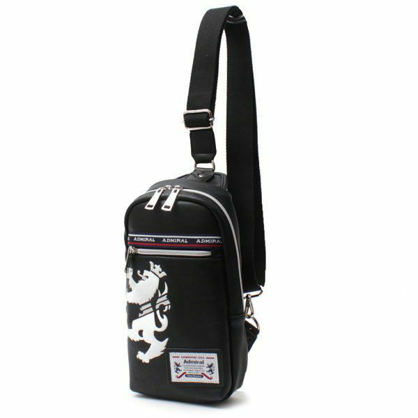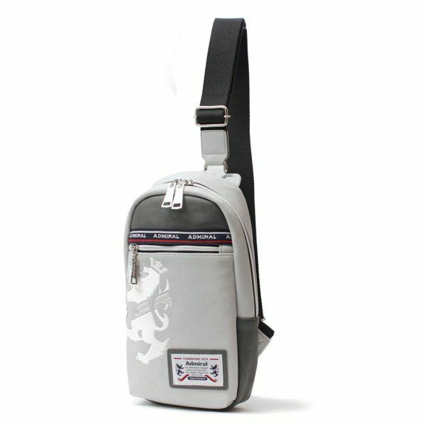 [新色グレーがラインナップに加わりました!] 1914年にイギリス海軍の制服のブランドとしてスタートしたAdmiral(アドミラル)。ランパント(獅子)の刺繍が印象的な“MARHAM - ADGA”シリーズ。シボ感のあるフェイクレザーを使用した、レジャーやスポーツ観戦、ゴルフシーンにも使えるデザインです。ADGA-01は、身軽に使えるボディバッグ。500mlペットボトルや長財布などを持ち歩くのにちょうどいいサイズ感で、オフコースでも使用可能。正面にはファスナーポケットを備え、小物の収納にも便利です。背面にはメッシュ素材を採用し、着用時の蒸れも軽減。ショルダーストラップは左右どちらでも付け替えできる設計になっています。