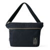 クラシカル で スタイリッシュ な デニム の ショルダーバッグ。濃いカラー の デニム生地 なので コーデしやすく、スニーカー に 合わせたい ビジネスカジュアル にも対応します。
