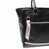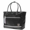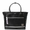 肌触りの滑らかなフェイクレザーにホワイトのパイピングデザインがポイントのADGTシリーズ。ADGT-05は、A4サイズが収まるサイズのトートバッグ。本体前身頃にはファスナーポケットと、マグネットホック付きポケットを完備。本体内部には、ケータイベタポケットとクッション性のある素材を使用したタブレットポケットを完備。エンブレムにも使用される、ライオンをデザインしたメタルワッペンや、ブランドロゴが入った引手はオリジナルデザインのものを採用。ブランドロゴがプリントされたリボンが付属。