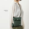 落ち着いた カラー の スマホジャスト な ポシェット は、シンプル なので カジュアル にも フォーマル にも 合わせやすい。