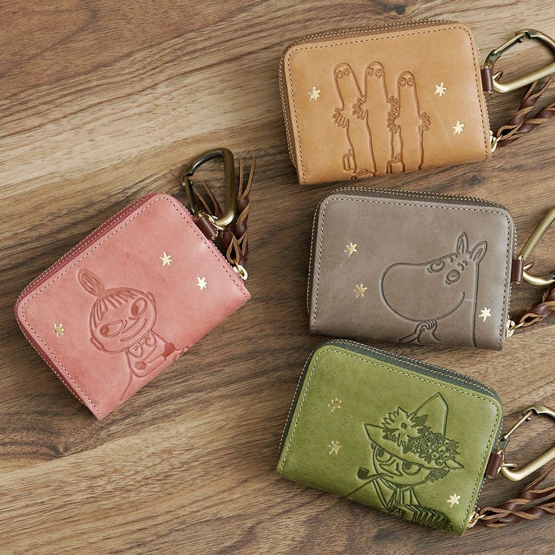 ムーミン、リトルミイ、スナフキン、ニョロニョロ が 各カラーごとに 型押しされた 大人可愛い キーケース。