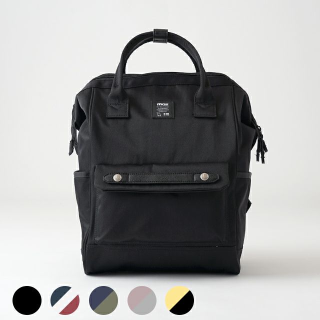 [新色登場!] [リニューアルして軽量になりました!] 北欧ブランドmoz(モズ)、毎日使いたい「EVERY - ZZCI」シリーズ。ZZCI-07Aは、がま口タイプのリュックサック。大きく開く取り出しやすさに加え、内部は2気室になっていて、仕分け収納が可能です。(意匠登録済:登録番号第1571335号)。内側には、伸縮素材のホルダー“moz pocket”(モズポケット)を完備し、ママバッグ・パパバッグとしても便利な設計です。サイドポケットには500mlペットボトルも収納できるのもうれしいポイント。内側はストライプ柄の生地を使用し、かわいさと視認性の良さを兼ね備えています。ハンドルも付いているので、手持ちもできる2WAY仕様のリュックです。