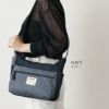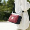 素材を生かしたデザイン 二種類のポリエステル生地の切り替えで北欧ナチュラルテイストの心安らぐデザインのショルダー鞄。