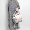 [新色登場!] [リニューアルして軽量になりました!] 北欧ブランドmoz(モズ)、毎日使いたい「EVERY - ZZCI」シリーズ。ZZCI-07Aは、がま口タイプのリュックサック。大きく開く取り出しやすさに加え、内部は2気室になっていて、仕分け収納が可能です。(意匠登録済:登録番号第1571335号)。内側には、伸縮素材のホルダー“moz pocket”(モズポケット)を完備し、ママバッグ・パパバッグとしても便利な設計です。サイドポケットには500mlペットボトルも収納できるのもうれしいポイント。内側はストライプ柄の生地を使用し、かわいさと視認性の良さを兼ね備えています。ハンドルも付いているので、手持ちもできる2WAY仕様のリュックです。