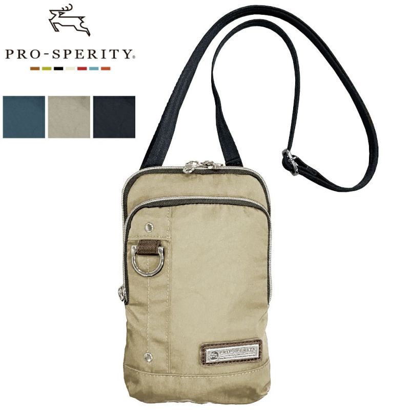 ■サイズ:約W13×H21×D1.5cm / ショルダー長さ:70~136cm(長さ調整可能) ■重量・容量:約 175グラム / 約 0.75リットル ■表面ポケット:ファスナー付きポケット×1 ■裏面ポケット:オープンポケット×1 ■内面ポケット:メッシュポケット×1、オープンポケット×1 ■カラー:ブラック、ネイビー、ベージュ ■本 体:ナイロンツイル(シワ加工、軽撥水加工) ■付 属:サフィアーノ風合成皮革(Dカンやロゴ部) ■ブランド:PRO-SPERITY プロスペリティ