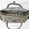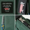 ハンドルバインダー カバン の 持ち手 を ホック で 留めて 手提げ としても 持ちやすく しました。ホック には LISA LARSON の ロゴ が 刻印 されて います。