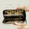 内側 の タータンチェック が クラシック な 雰囲気 を 醸し出す デザイン は