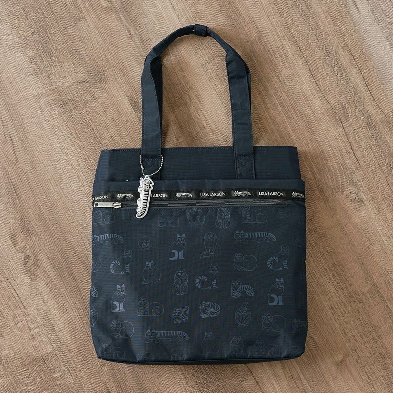 撥水加工 を 施した ナイロン リップストップ 生地 に、リサ・ラーソン が 描いた Sketch Cats を プリント した 軽くて 大きな トートバッグ。