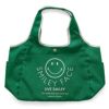 スマイリーフェイスのプリント 大きなニコニコマークが目を惹くプリント。ユニセックスで使用できるカジュアルなトートバッグです。