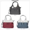持ち手がくり手のかわいい、コロンとしたフォルムの鞄です。 機能性にもすぐれていてハンドバッグとショルダーの2way仕様。 荷物が重い日はショルダーで持ち歩けます。 メイン収納部分にはあおりポケットがあり、 ファスナーとオープンの2層構造で、14Lと大容量でたっぷり入ります。 取り出しに便利なポケットが前面に2つ、後ろに1つと、外側に3つあるので よく使う小物をすっきり収納できるのもおすすめポイント。 持ち手をまとめるボタンのロゴの刻印や mozのオリジナルワッペンなど、シンプルな鞄にもこだわりのデザイン。 お弁当や水筒、ノート、A4書類も入る 通勤やデイリーユースに使いやすい2wayバッグです。