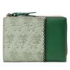 ムーミン、リトルミイ、スナフキン、ニョロニョロ が 型押し された 遊び心 あふれる 二つ折り 財布 です。