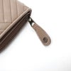 手触り良く柔らかな牛革をベースに、キルティング風ステッチ&猫モチーフの型押しを施した“ほがらか”シリーズ。 ごろんと寝ころんだ猫と、引手の肉球チャームがポイントです。 内側には抗菌・防臭加工を施した生地を使用し、長くご使用の際も快適に!