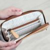 スウェーデン発の北欧ブランドmoz(モズ)。エルク(ヘラジカ)の型押しがポイントの“Elk”シリーズ。“Elk series ZNWE- 86001”はラウンドファスナーの長財布です。内側は使いやすい2ルーム式になっていて、お札の種別管理・レシートの収納にも便利な設計。中央に設置された小銭入れはファスナー式で、小銭がこぼれる心配も無用です。素材には牛革を使用し、しっとりと手に馴染む柔らかで使う毎に愛着のわく質感です。内側を布地にすることで、見た目とは裏腹の軽量さを実現。裏地はストライプ柄で明るく中身が見やすいデザインになっています。