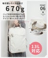 サイズ:(W)26×(H)39×(D)10cm 仕様 [外側] ・ファスナーポケット×2 ・サイドポケット×2 [内側] ・クッション材ポケット×1 ・メッシュファスナーポケット×1 ・オープンポケット×5 容 量:約 13リットル 重 量:約 670グラム 素 材:本体/シワナイロン、付属/牛革 製造国:中国