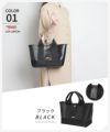 サイズ (W)(上)43/(下)33×(H)35×(D)9cm 容量 [本体]:(W)上39/下27×(H)20×(D)13cm [インナーポーチ]:(W)上27/下22.5×(H)15×(D)12cm (取り外し可能) 重量 約 370g 仕様 メイン収納(スナップボタン) [内側] ・オープンポケット×1 ・インナーポーチ固定用スナップ×2 [付属品] ・インナーポーチ×1個 ・仕切りあり(3仕切り) 素材 [本体]合成皮革・フェイクレザー、[付属パーツ]牛革、[ポーチ]ポリエステル、牛革 カラー ブラック、グレージュ、アイボリー×ネイビー、グリーン
