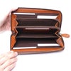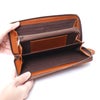 サイズ:ヨコ19.5cm×タテ9.5cm×厚さ2.5cm 仕様 札入れ、小銭入れ(ファスナー)、カードポケット 素材 : 本革(牛革、シボ型押しレザー)