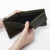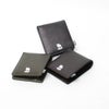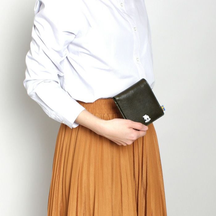 タテ9.8cm×ヨコ11.5cm×厚さ3.5cm 仕様 札入れ、小銭入れ(スナップボタン)、カードポケット 素材 : 本革(牛革、シボ型押しレザー)
