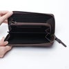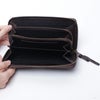 サイズ:ヨコ9.5cm×タテ19cm×厚さ3cm 仕様 札入れ、小銭入れ(スナップボタン)、カードポケット 本革(牛革、シボ型押しレザー)