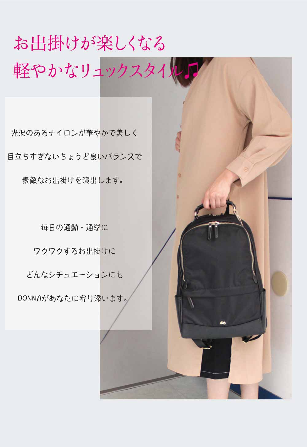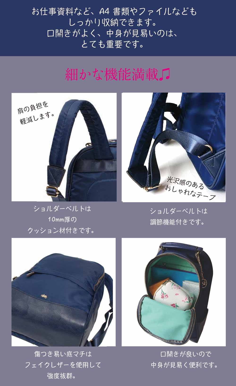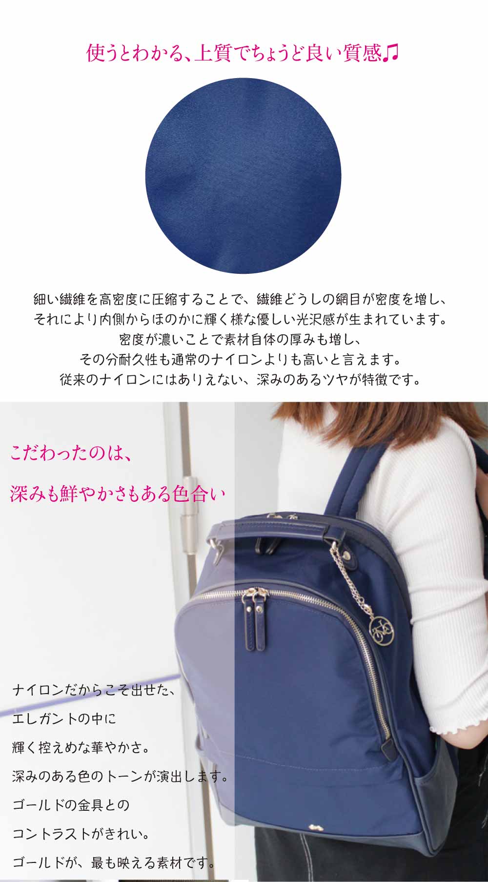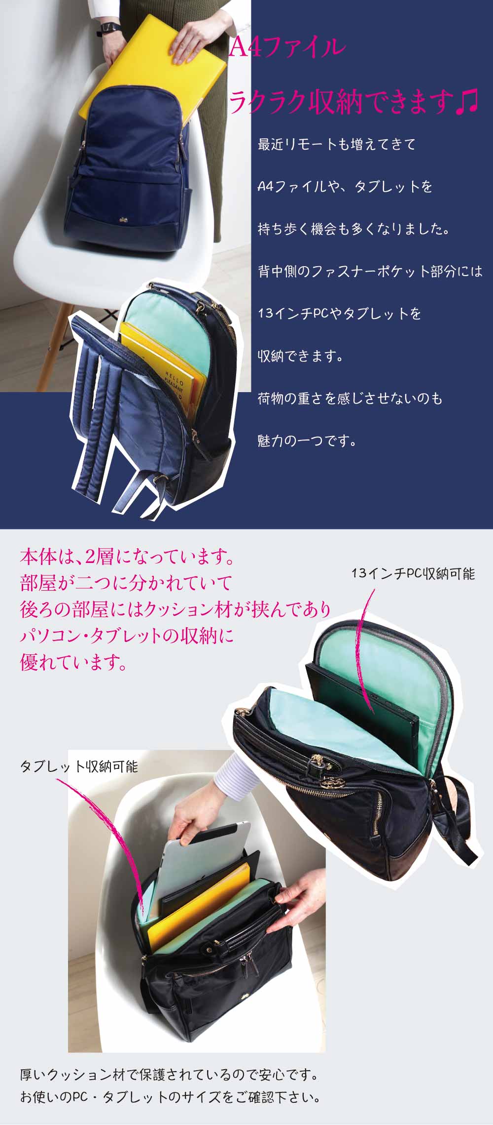 • 本体/高密度ナイロンツイル 付属/合成皮革(フェイクレザー)、本革(牛革)