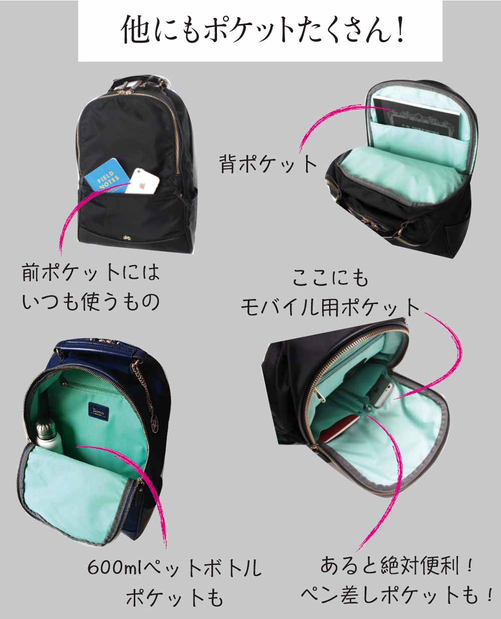 • ・ファスナー付きポケット×1