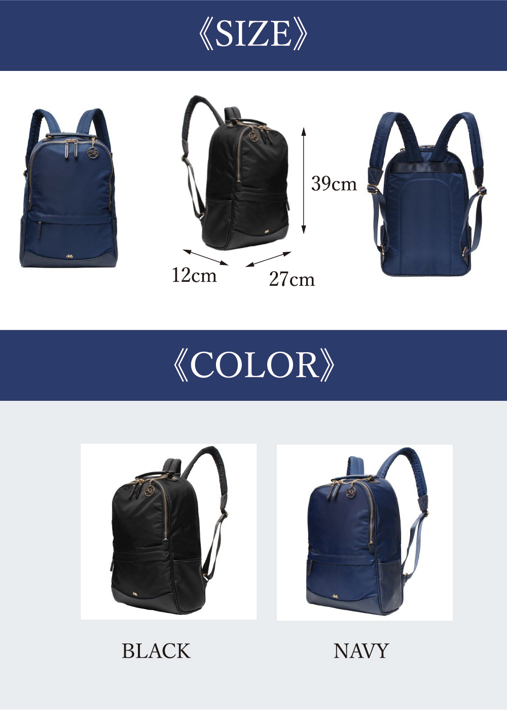 • サイズ : (W)27×(H)39×(D)12cm