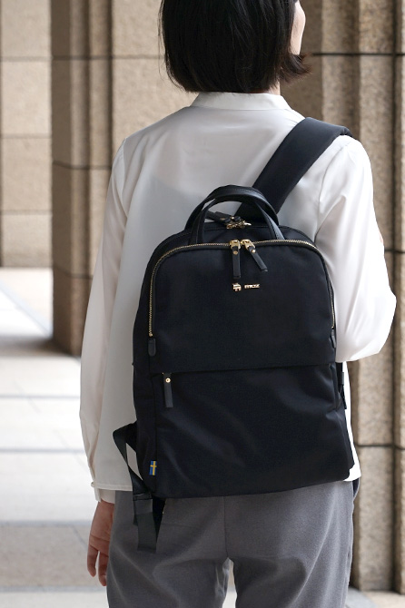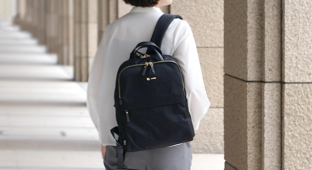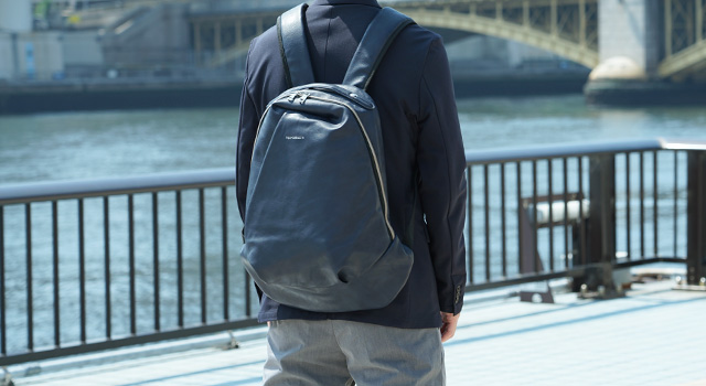 ビジネス使いにも対応したスマートなシルエットのPC収納対応リュックサック詳しくはこちら