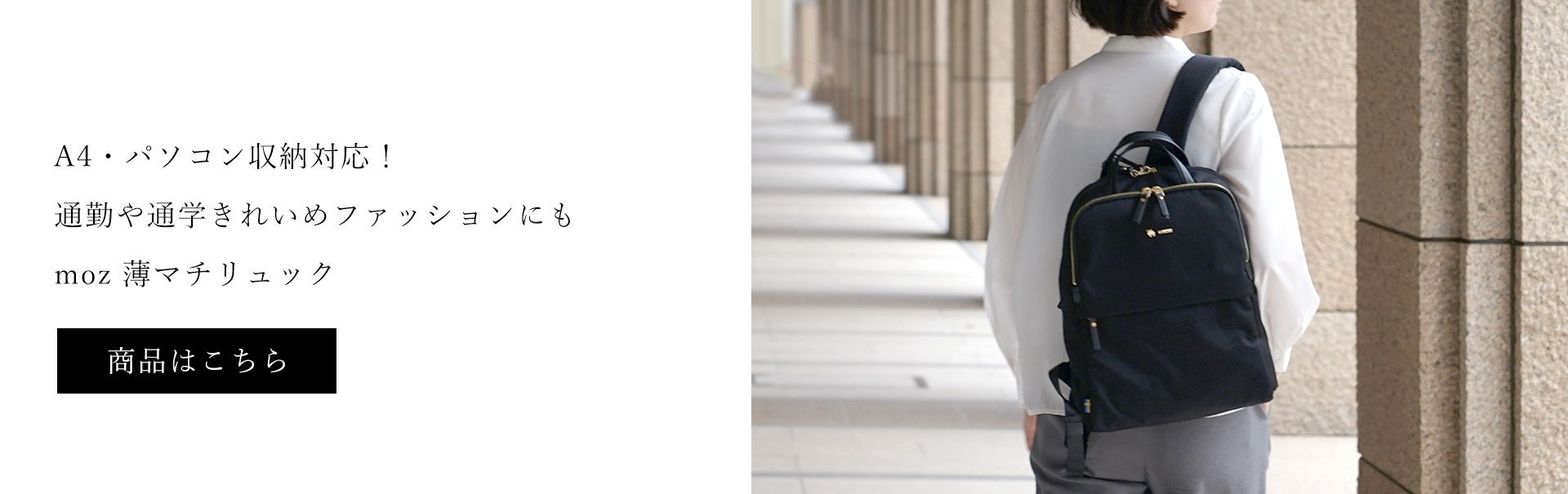 A4・パソコン収納対応!通勤や通学きれいめファッションにもmoz 薄マチリュック詳しくはこちら