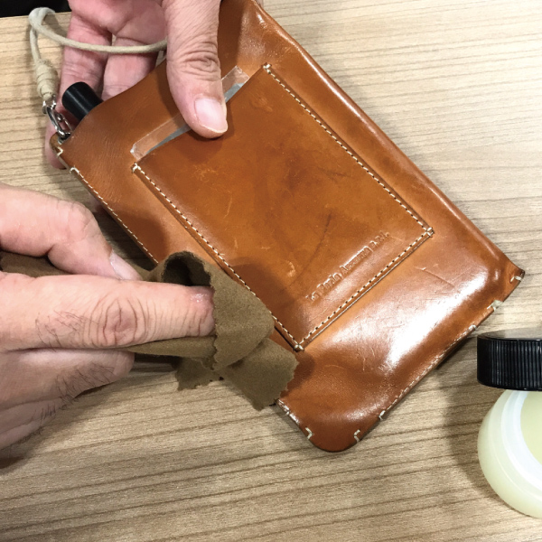 ・オイルケア 購入した時よりも表面がカサついてきたな…と感じたら、オイルやクリームでしっかり保湿して あげることが必要です。 乾燥した革に潤いや油脂分を与えることで、艶が増して綺麗になります。 ① 乾拭きやブラッシングで、バッグ表面のホコリを落とします。 ② やわらかい布に1円玉くらいの量のオイルをとり、バッグ全体に円を描くように薄く塗り広げます。 ③バッグ全体にオイルを塗り終えたら、30分~1時間かけて乾燥させます。 ④仕上げに柔らかい布で全体を乾拭きして、余分なオイルやクリームを拭き取ります。 ※注意点※ オイルやクリームは、つけすぎるとシミの原因になるので、つけすぎないように注意してください。また、革に直接つけないようにご注意ください。 |