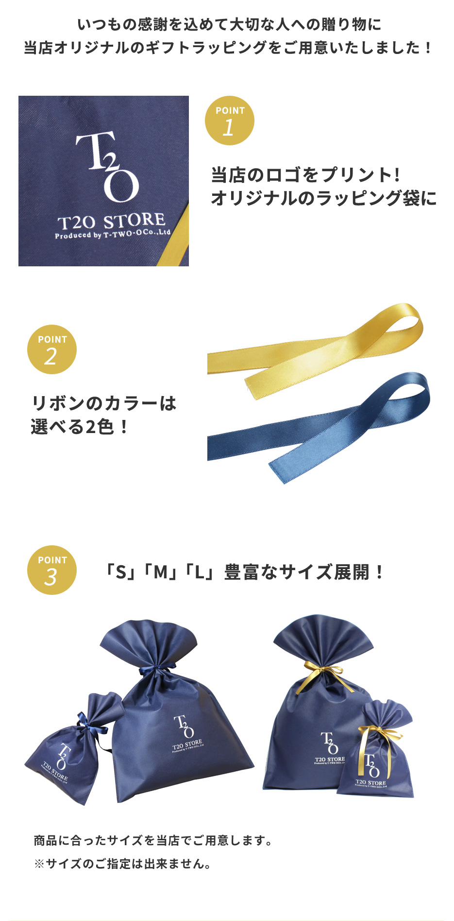 商品のサイズ・形状により、ラッピング袋のサイズが異なります。