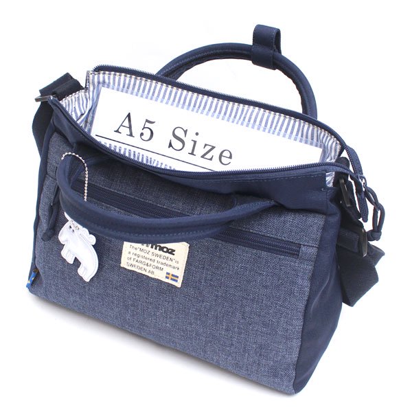 北欧ブランドmoz(モズ) ストラップ付きでショルダーとしても使用できます。A5サイズがぴったり入る大きさで、お出かけや旅行にも便利。広めのマチ幅で、ポーチや長財布などもしっかり入ります。小分けポケットも備えているので小物などの仕分けも快適に。本体が軽量なので、肩掛けや斜め掛け時も負担がかかりにくくなっています。ブランドアイコンであるエルク(ヘラジカ)モチーフのリフレクトチャームが付属します。
