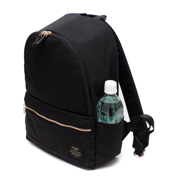 オフィスカジュアルにも使えるBianchiDonna(ビアンキドンナ)リュックサックです。軽量・撥水素材でデイリーユースに最適。A4サイズ対応で内側には小分けポケットを備えており、外側のサイドポケットには500mlペットボトルが収納できます。背面ファスナー付きで背負ったままお財布などの出し入れが可能。スムースな手触りの生地を使用し、摩擦が起きにくく衣服を傷めにくいところもこだわりのポイントです。