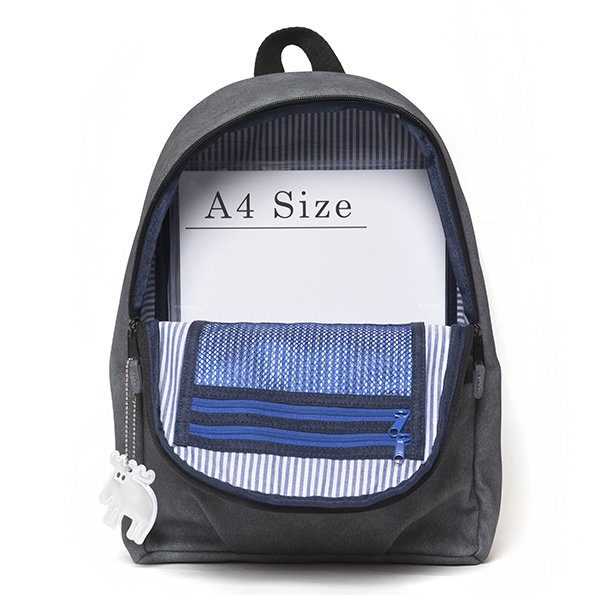A4サイズが収納でき、日常使いにも便利なサイズ感。内側にはファスナー付きポケットと、中身の見えるメッシュファスナーポケットを内蔵。伸縮素材のホルダー”mozポケット”も備え、立てて収納したいペットボトルや折り畳み傘の収納に便利です。貴重品収納や旅行時にもに役立つ背面ポケット、背負ったまま内部にアクセスできる背面ファスナーも備えた快適設計。北欧ブランドmoz(モズ) ブランドモチーフのエルク(ヘラジカ)をかたどったリフレクトチャームが付属します。