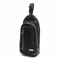 シンプルで大ぶりのボディバッグ。少し荷物がある私でも大丈夫そうです。クロを買いましたが生地もしっかりしており高級感があります。 -