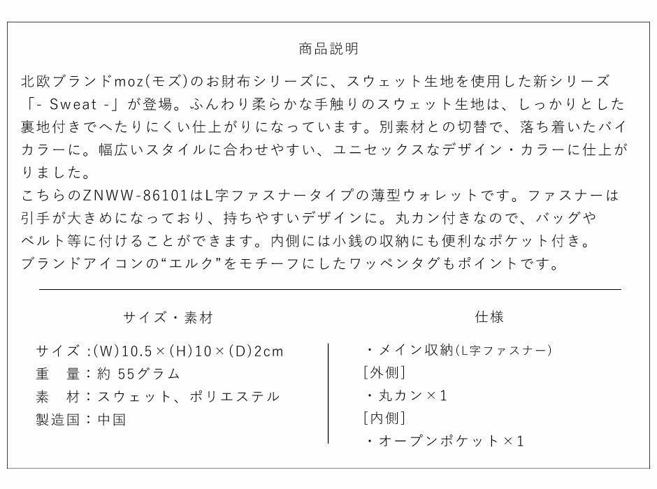 他の画像を見る moz(モズ) ZNWW-86101 スウェット生地を使用した◎ユニセックスなデザイン・カラーのL字ファスナー財布 4.00 銀行振り込み不可 ¥ 2,530 税込 SOLD OUT 詳細を見る お気に入りに登録する